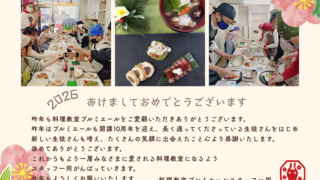 あけましておめでとうございます。昨年も料理教室プルミエールをご愛顧いただきありがとうございます。昨年はプルミエールも開講10周年を迎え長く通ってくださっている生徒さんをはじめ新しい生徒さんも増え、たくさんの笑顔に出会えたこと心より感謝いたし...