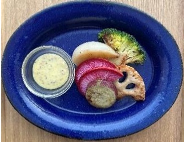 寒さ厳しい時期に糖度が高くなる甘い根菜をじっくり焼いて美味しさを引き出した「根菜のホットサラダ」、手作りのハニーマスタードソースもおすすめです。