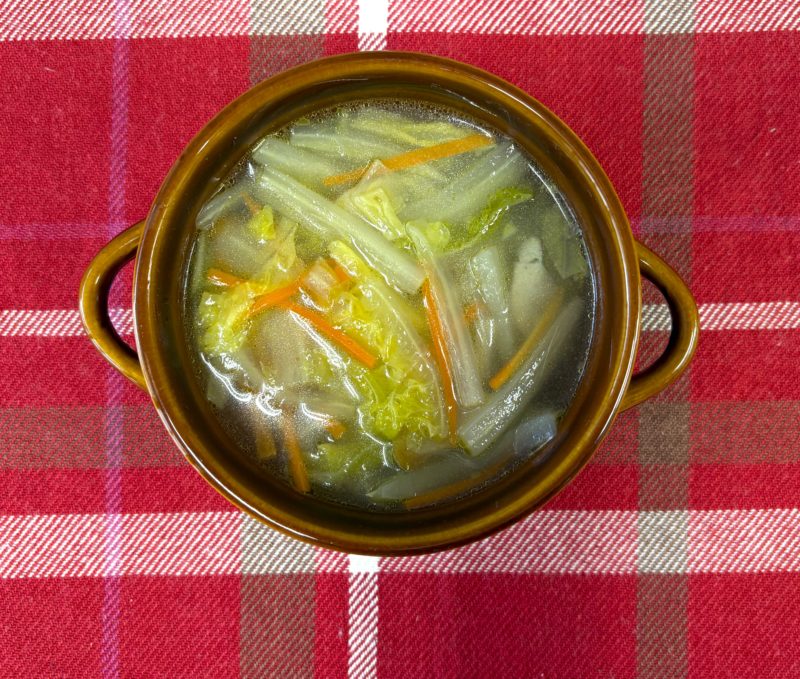 「白菜のジンジャースープ」はプルミエール人気のスープ、生姜が体の中から温めてくれます。