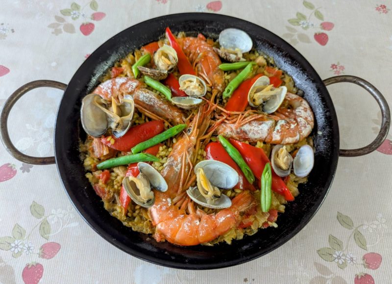 サフランを使って本格的な香しい香りとふんわり味をプラス!パエリア専用のパエリアパンを使ってオーブンで焼きます。タコを使ってカルパッチョ、おうちでは刺身で応用してくださいね。